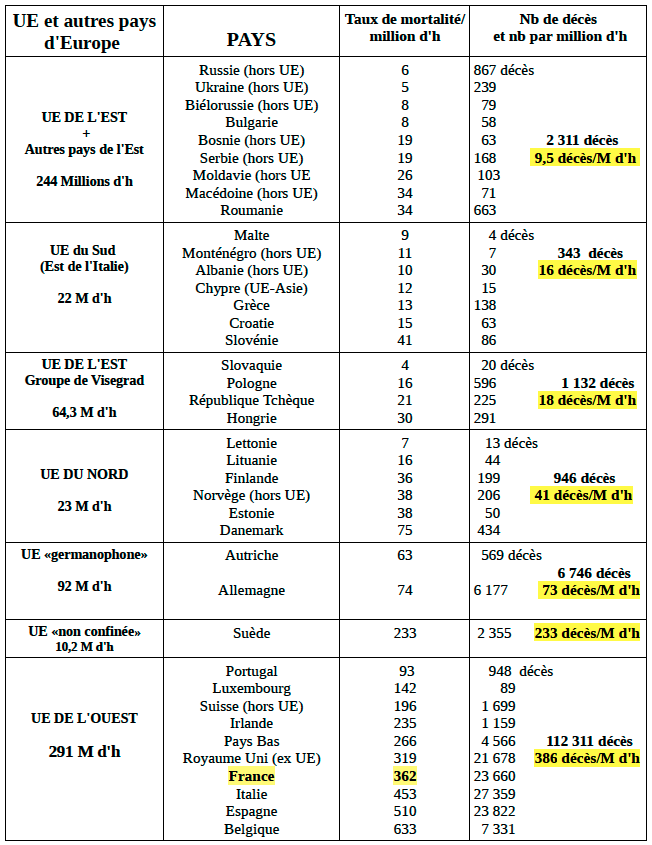 Pour mémoire, le taux de mortalité Covid-19 est de 27,9 décès par million d’h. au niveau mondial.