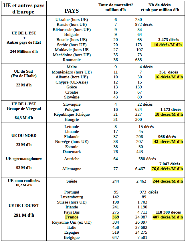 Pour mémoire, le taux de mortalité Covid-19 est de 29,3 décès par million d’h. au niveau mondial.