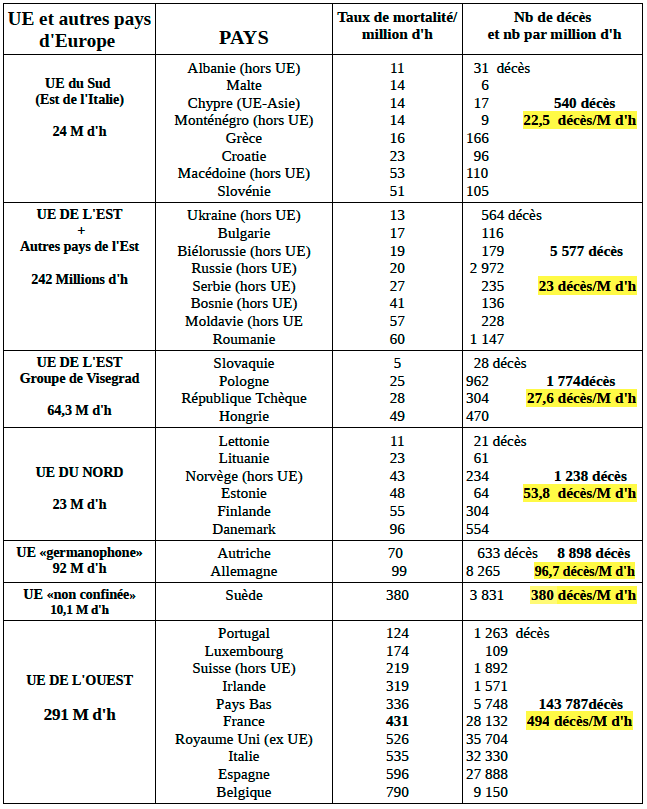 Pour mémoire, le taux de mortalité Covid-19 est de 42,2 décès par million d’h. au niveau mondial.